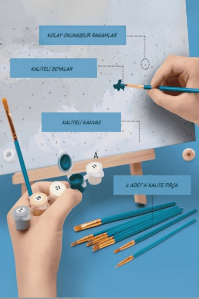 • Kullanım Kolaylığı: Sayılarla boyama yöntemi sayesinde adım adım ilerler, kısa sürede profesyonel görünümlü bir tablo elde edersiniz.