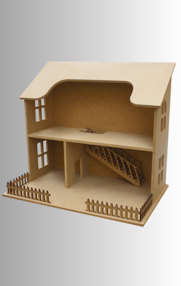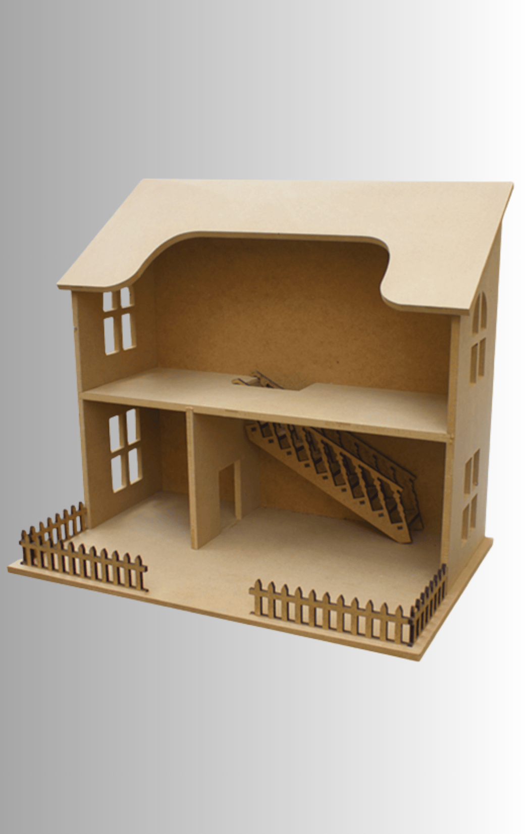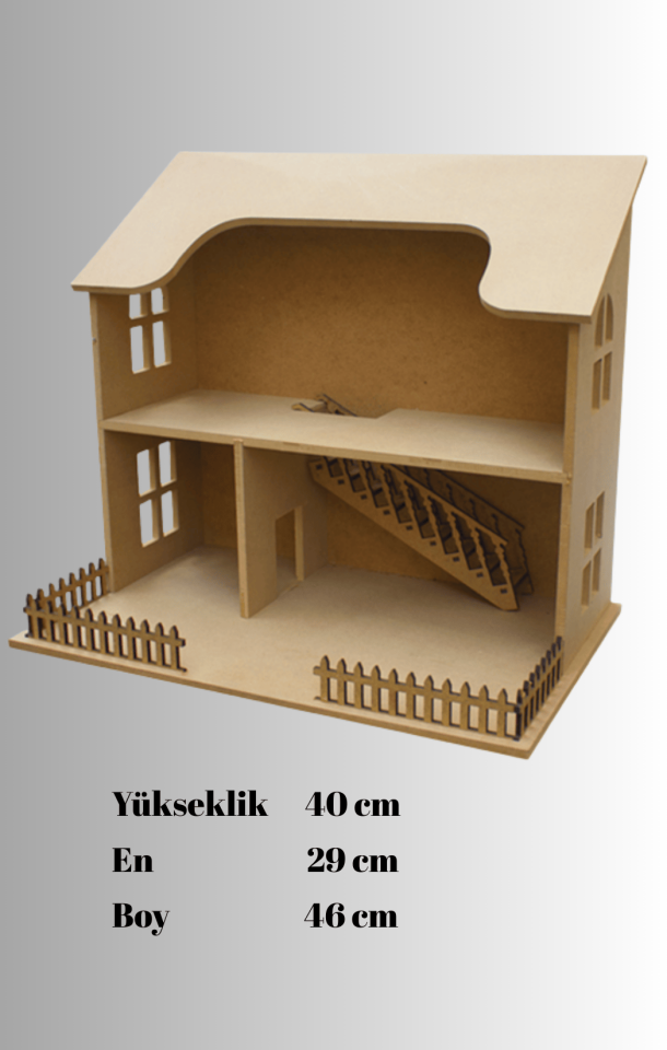 Çitli 2 Katlı Oyun Evi – 1. Sınıf Ham MDF (40x29x46 cm)